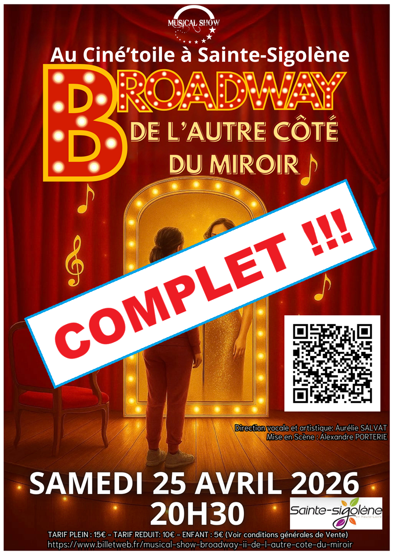 Le spectacle Musical Show Broadway : de l’autre côté du miroir du samedi 25 avril est complet.