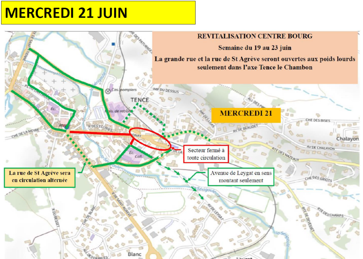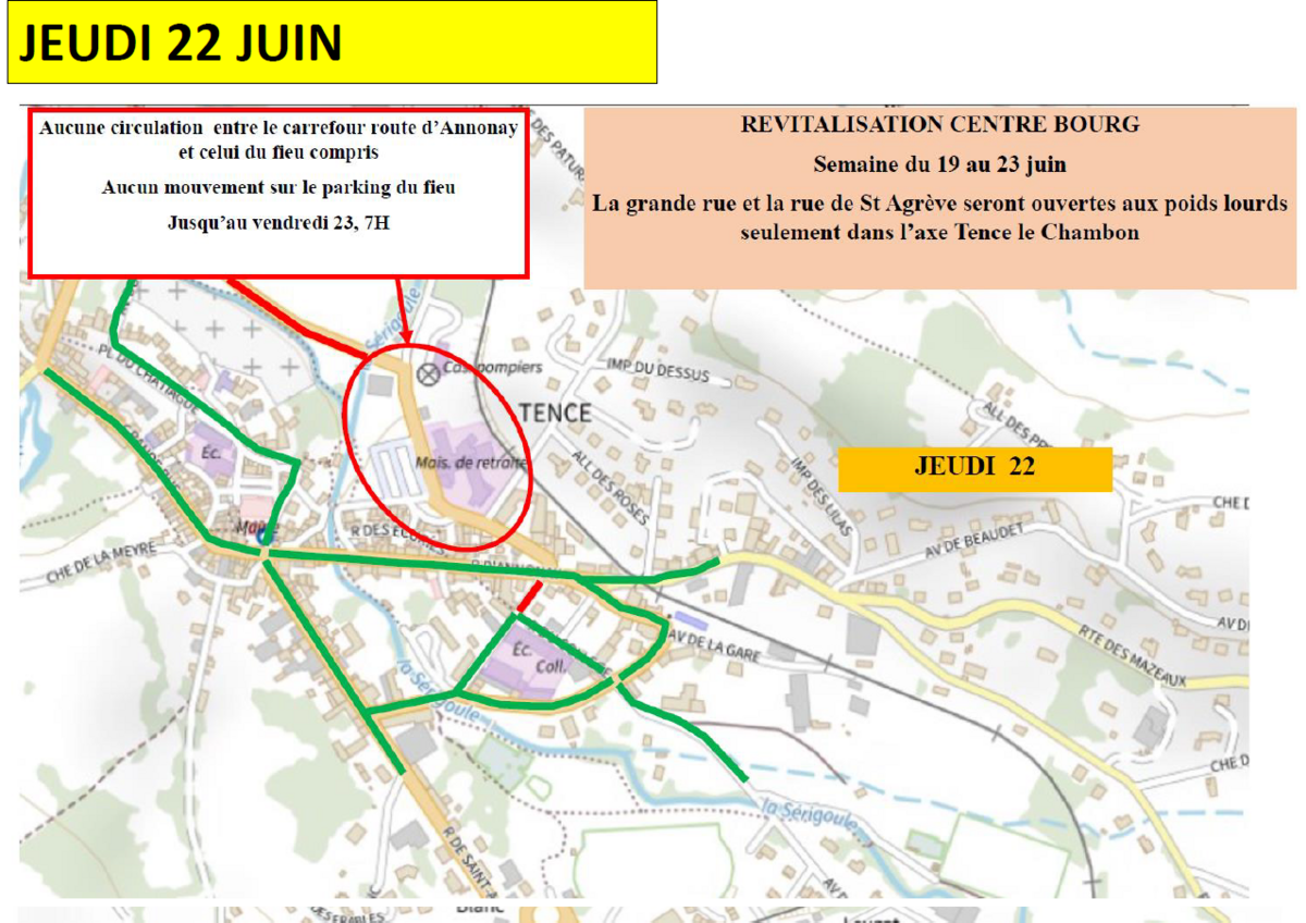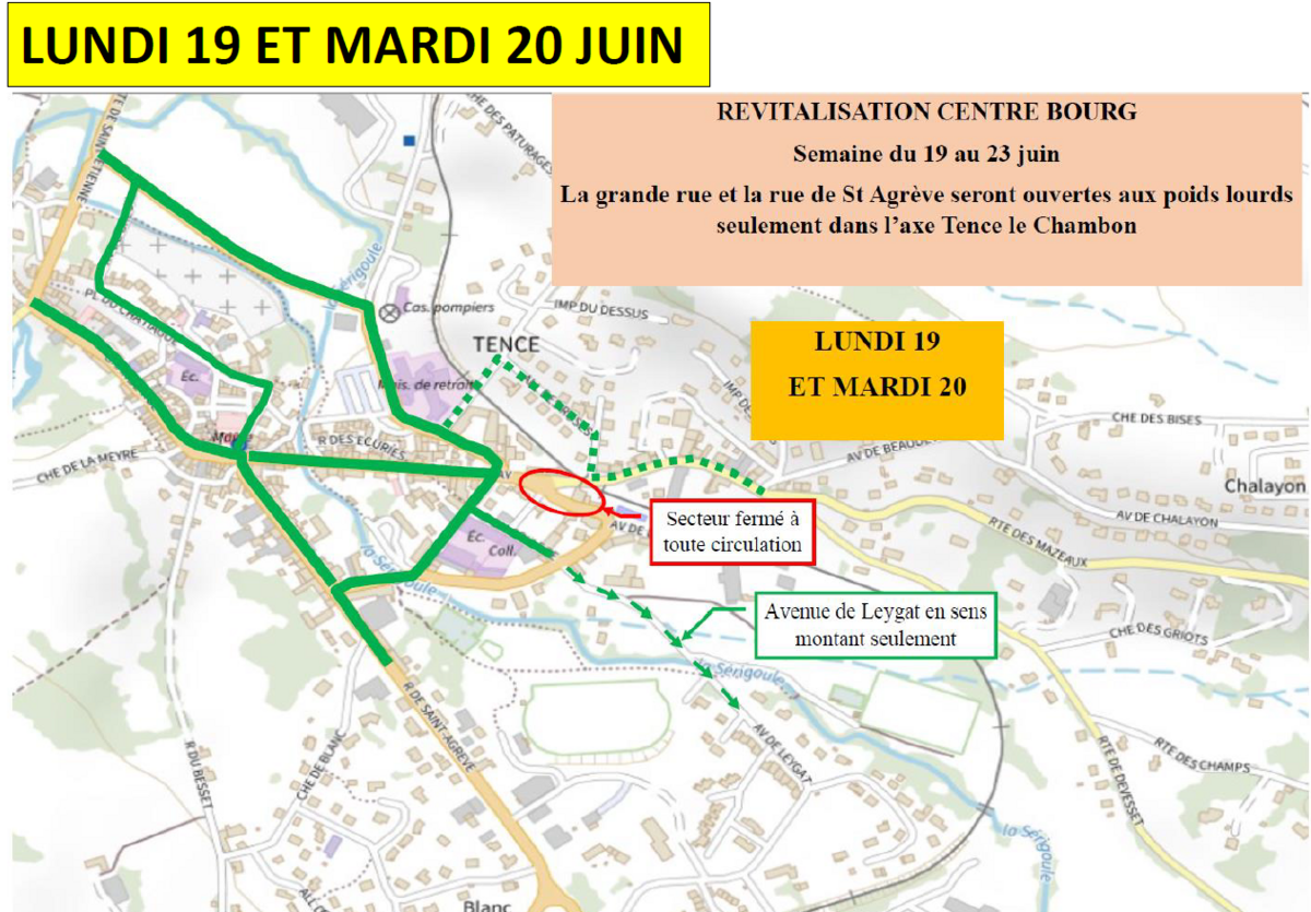Travaux centre-bourg 🚧 19/6/23 Dernière semaine de travaux. Attention changement de déviation le Lundi, Mercredi et Jeudi.