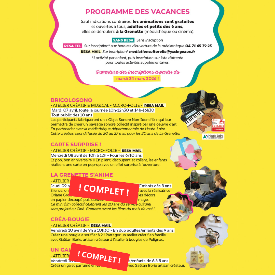 Le Pôle Culture de la Ville d'Yssingeaux vous a concocté un programme d’animations pour petits et grands !✨