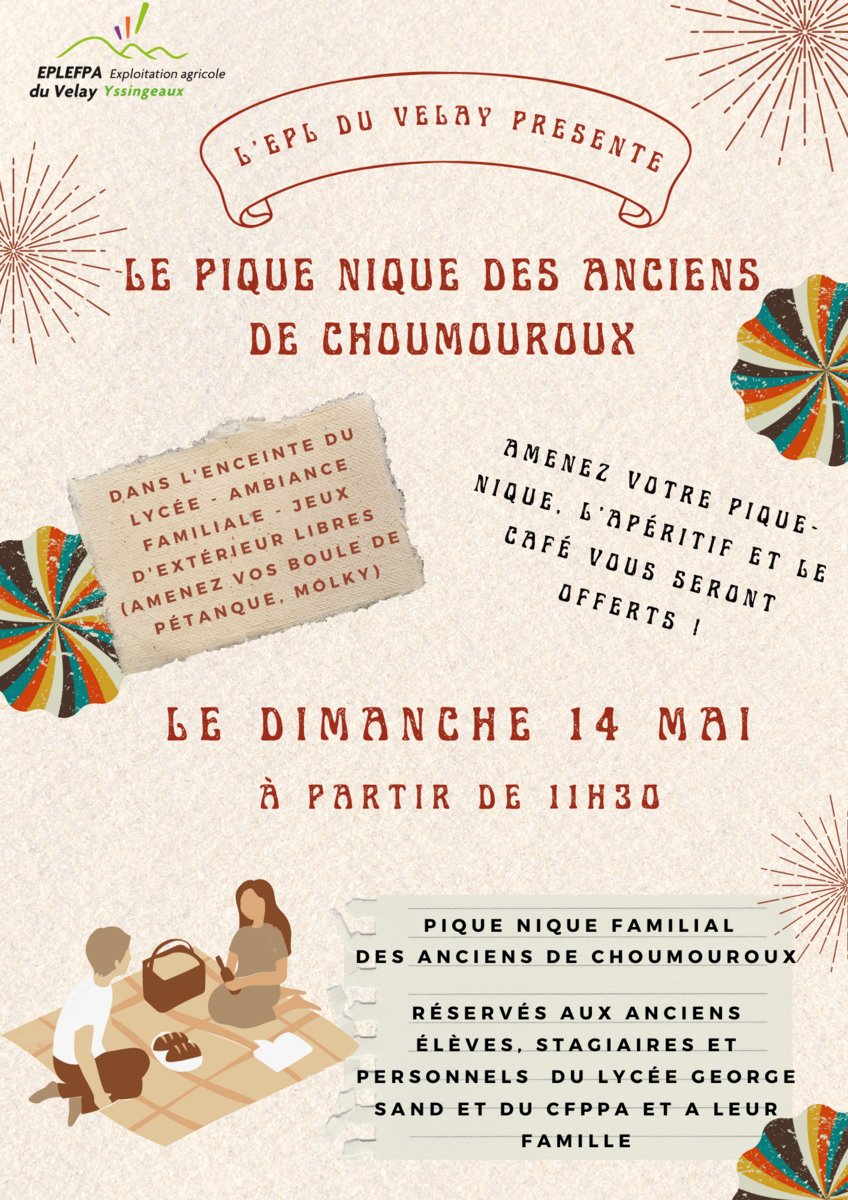 Attention, événement réservé aux anciens de Choumouroux (anciens élèves lycée et stagiaires Cfppa) et au personnel actuel et passé - Entrée gratuite