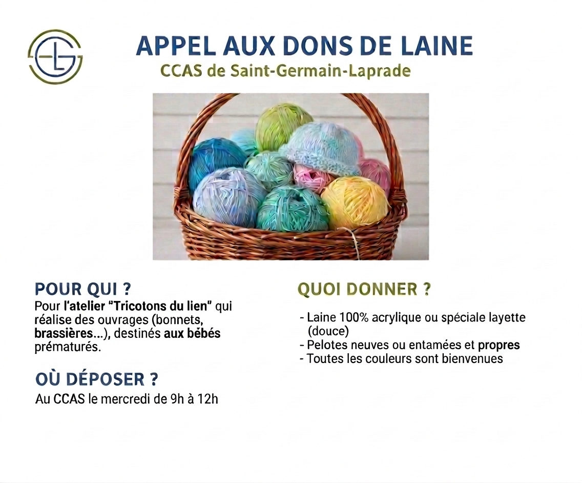 Appel aux dons de laine 10/4/26 L'atelier "Tricotons du lien" recherche de la laine. Source : Bien vivre à Saint-Germain-Laprade