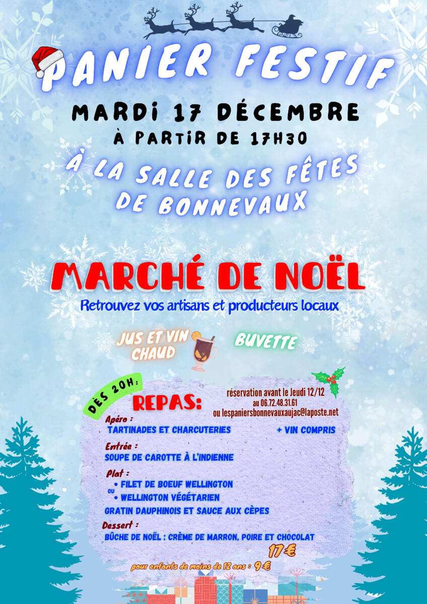 Panier festif et marché de Noël le 17 décembre à partir de 17h30 à la salle des fêtes de Bonnevaux