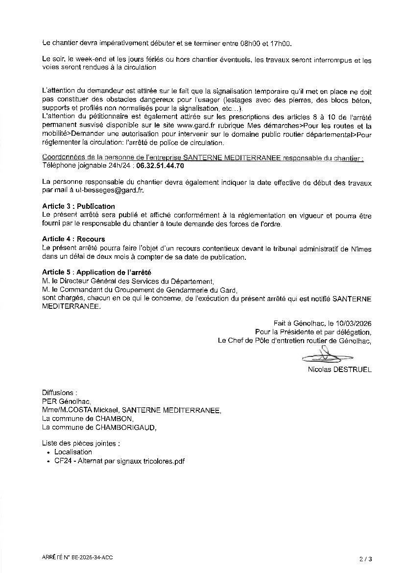 Votre mairie / Actualités / ARRETE TEMPORAIRE DE CIRCULATION N°BE-2026-34-ACC