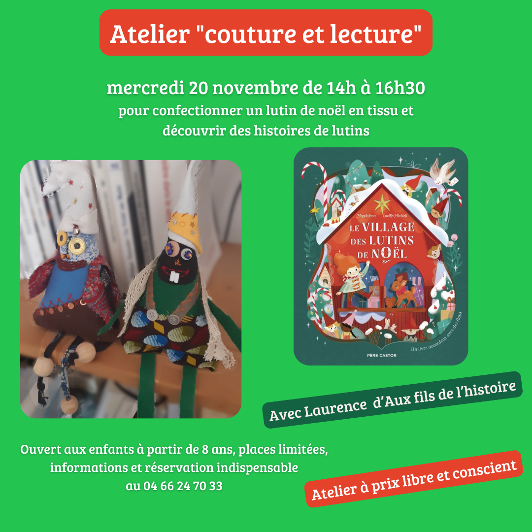 La Librairie qui relie invite l'association Aux fils de l’histoire pour animer un atelier couture et lecture à destination des enfants (à partir de 8 ans) et adolescents.