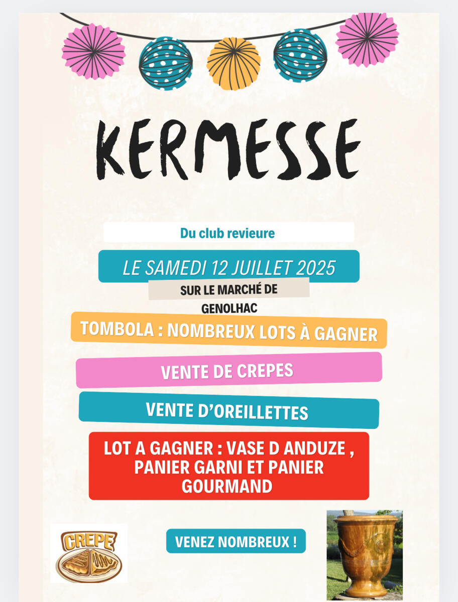 Kermesse - CLUB REVIEURE 27/06/2025 Kermesse du CLUB REVIEURE Samedi 12 juillet sur le marché Place du Colombier