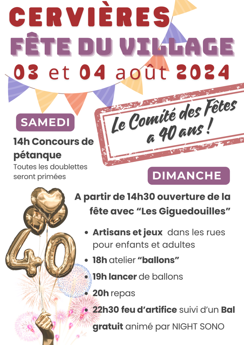 Le 3 et 4 août, venez fêter les 40 ans du Comité des Fêtes !