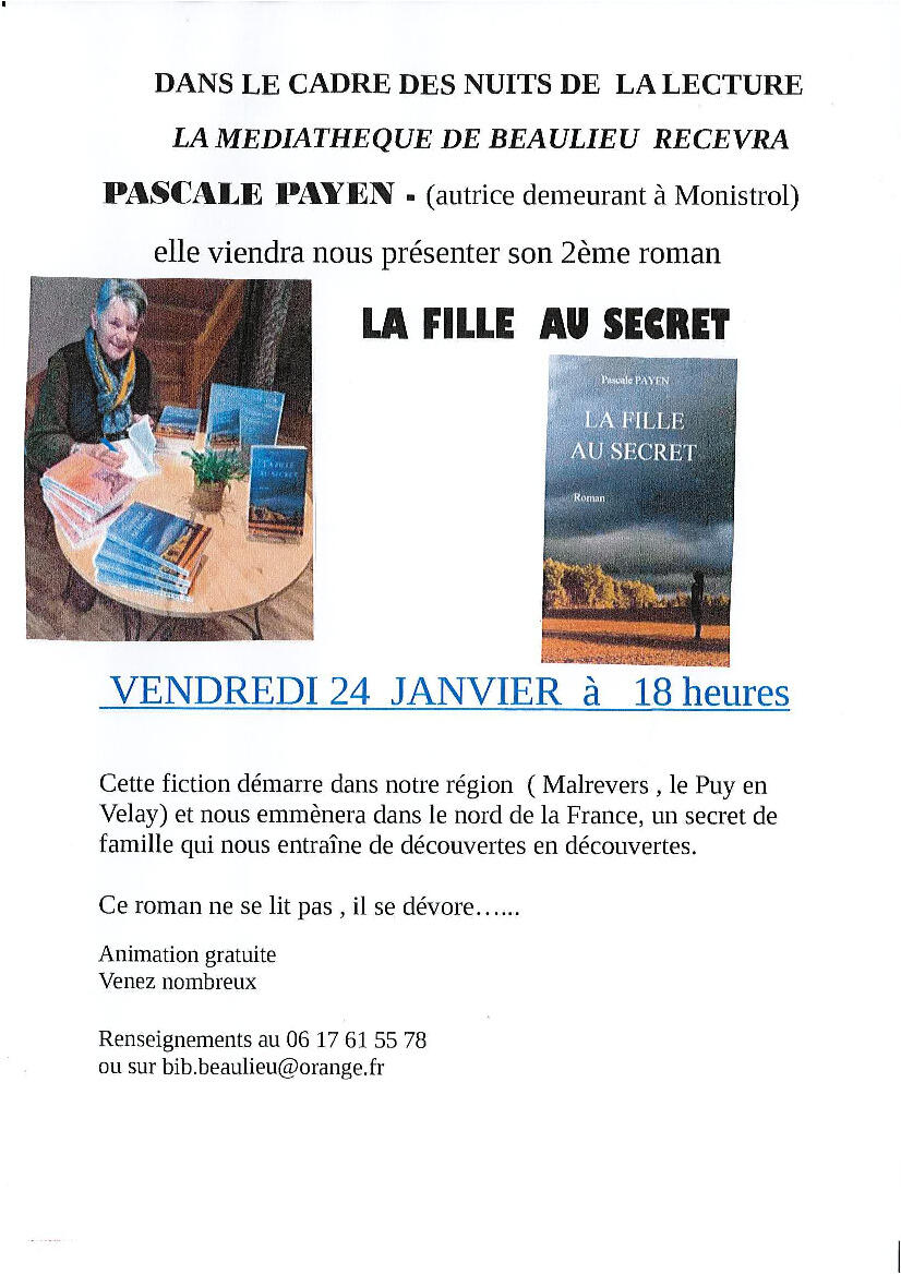 📚 Nuits de la lecture Ă la bibliothèque de Beaulieu 14/01/2025 Rendez-vous vendredi 24 janvier, Ă 18h :Â