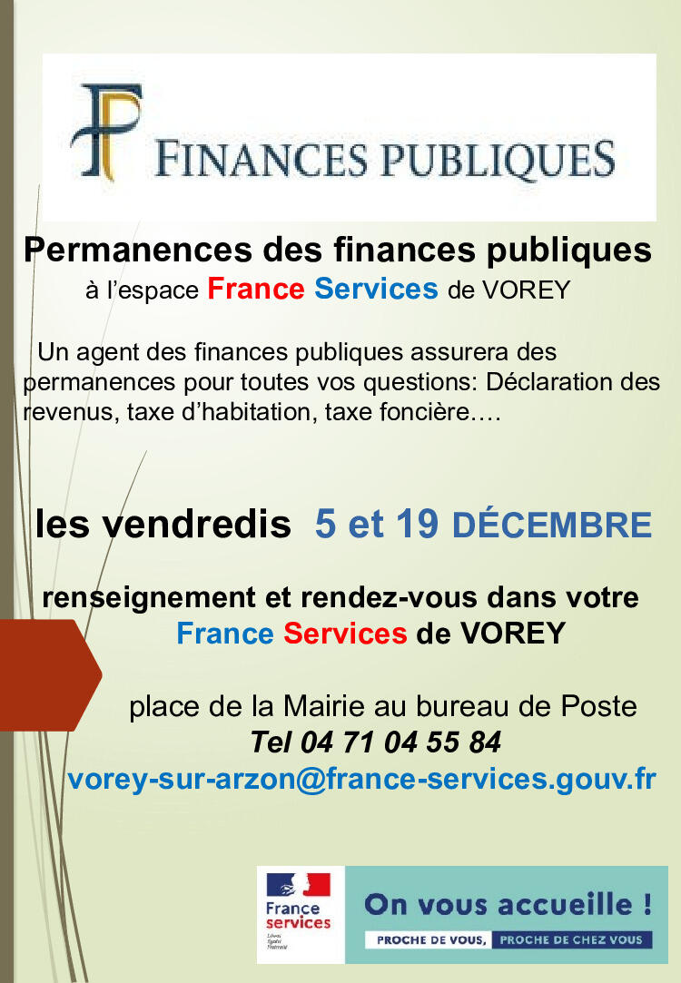 Permanences des finances publiques 25/11/2025 Les vendredis 5 et 19 décembre à l'espace France Services de Vorey : Source : Mairie de Beaulieu
