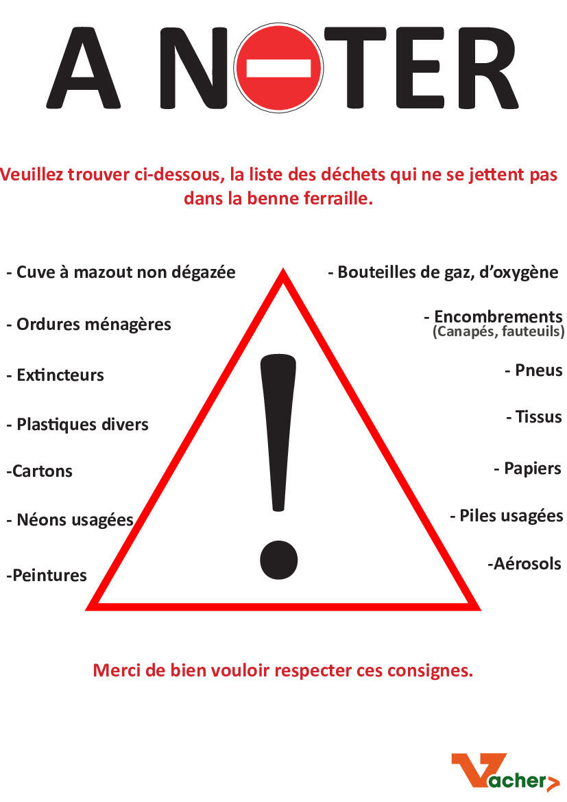 la liste des déchets qui ne se jettent pas dans la benne ferraille