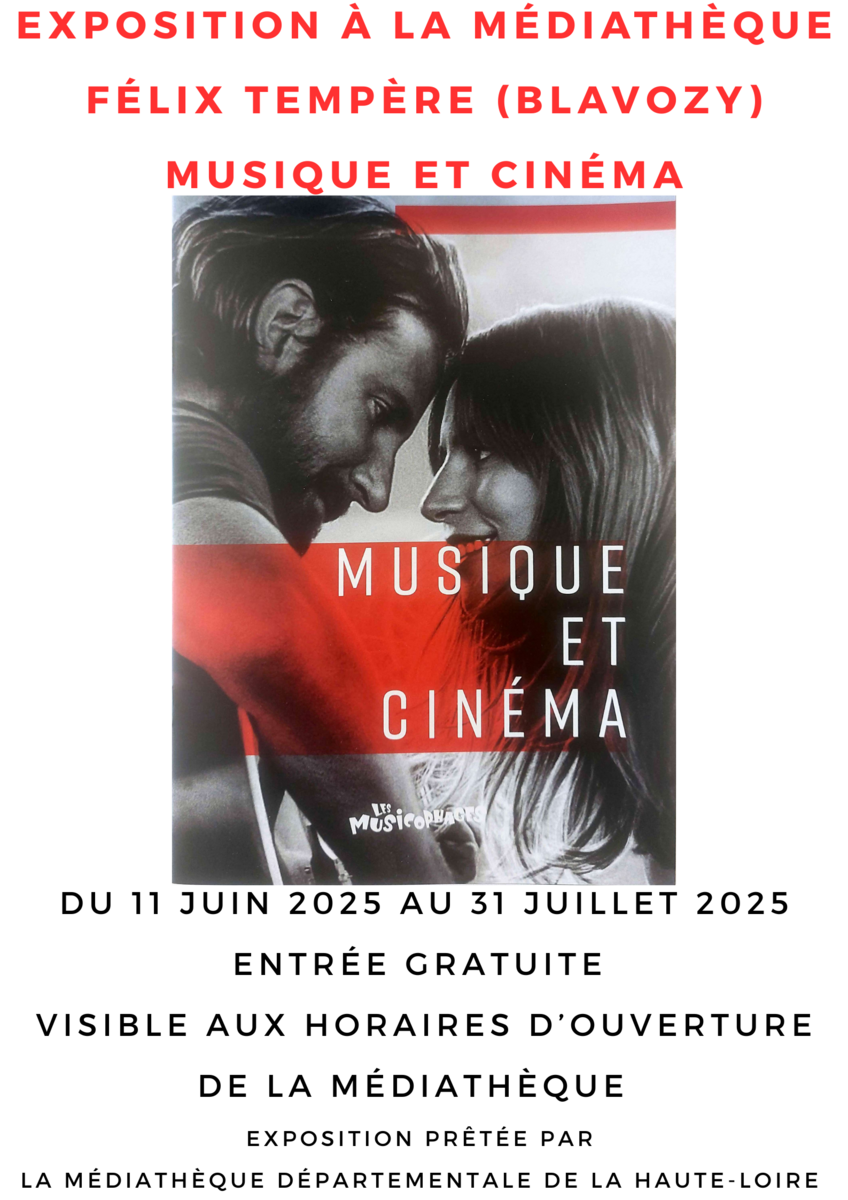Du 11 juin au 31 juillet, la médiathèque propose une exposition sur "Musique et cinéma" prêtée par la médiathèque départementale de Haute-Loire.