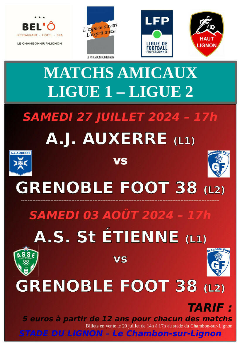 Le HAUT-LIGNON FOOT participe à l'organisation de matchs amicaux professionnels au CHAMBON-sur-Lignon.