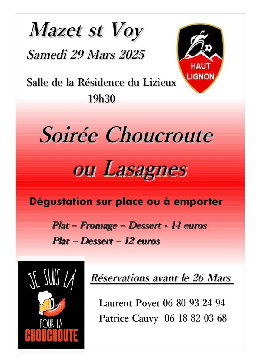 Haut Lignon Foot organise sa traditionnelle soirée CHOUCROUTE / LASAGNE