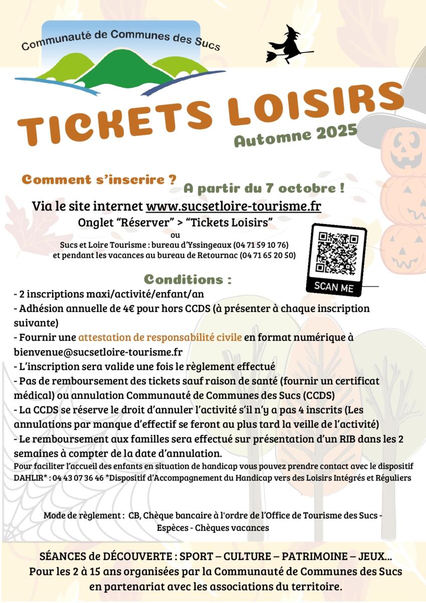Tickets Loisirs AUTOMNE 2025 - CCDS 🍂🍁 04/10/2025 Programme Tickets Loisirs Automne 2025🍂🍁 Source : Mairie de Lapte