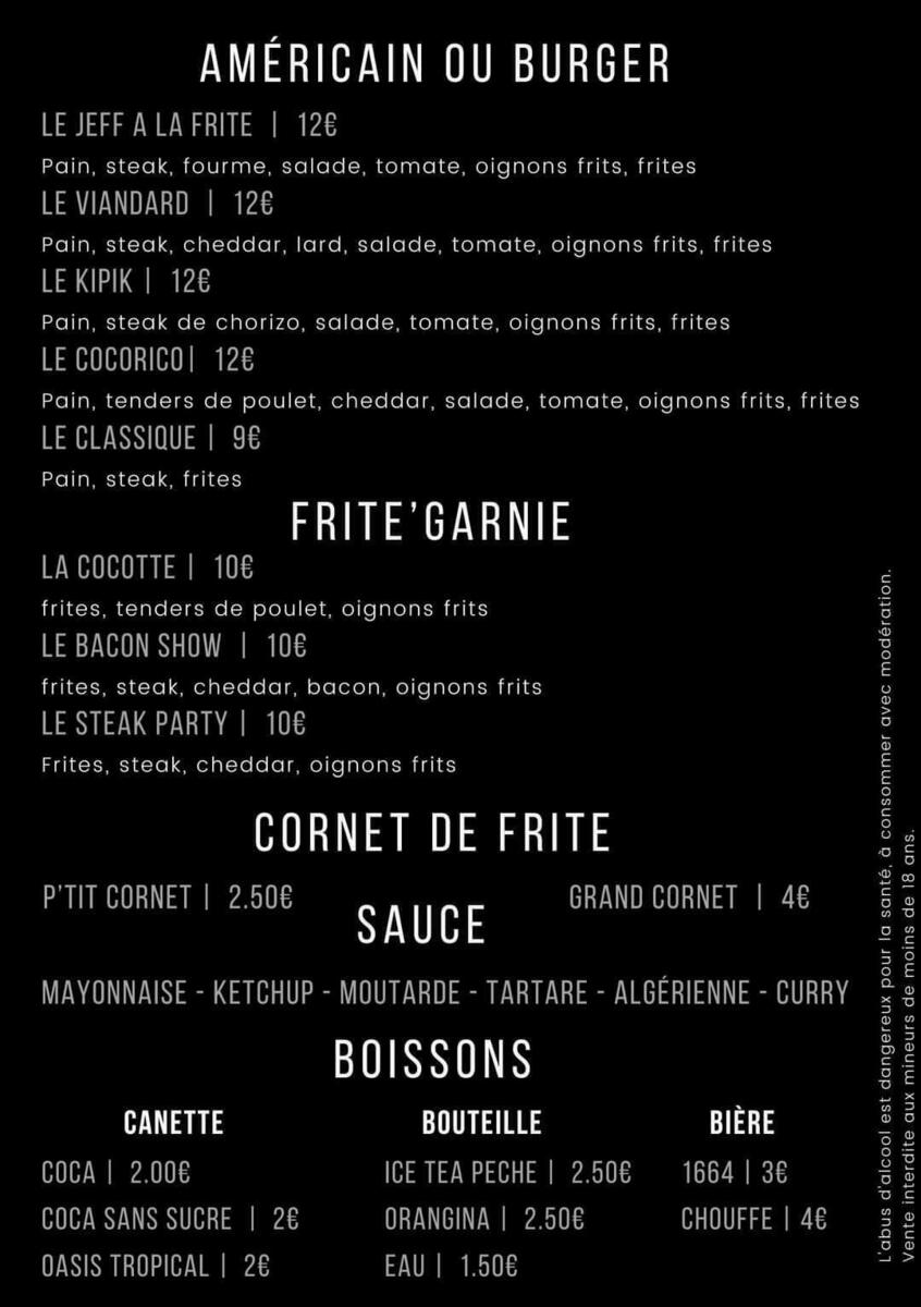 Après le succès de vendredi dernier, Jeff à la frite a décidé de venir s’installer tous les vendredis soir de 18h à 21h30 jusqu’à la fin de l’année.
