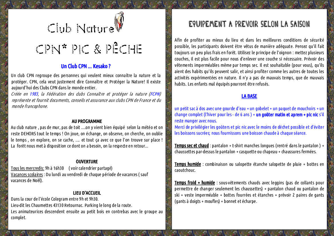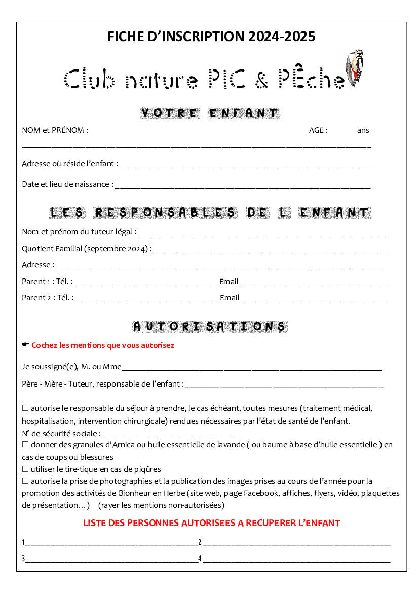 Pour s'inscrire au CLUB NATURE Pic & Pêche