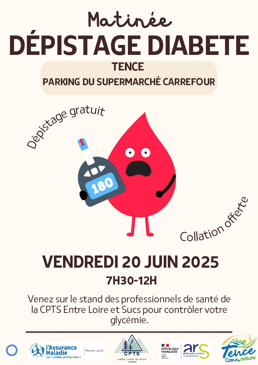 Venez rencontrer les professionnels de santé de la CPTS Entre Loire et Sucs pour un dépistage gratuit de votre glycémie.