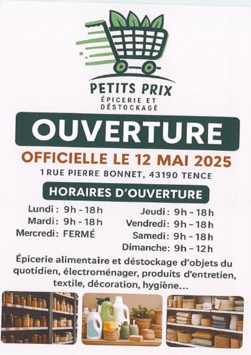 Ouverture d'un nouveau magasin épicerie et déstockage  "PETITS PRIX" le 12 mai 2025, 1 Rue Pierre BONNET à TENCE.
