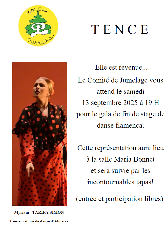 💃 Le Comité de Jumelage vous invite au gala de fin de stage de danse flamenca !