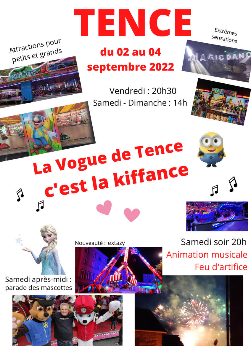 Vogue de Tence 25/08/2022 Venez profiter des attractions et animations de la vogue du 2 au 4 septembre.