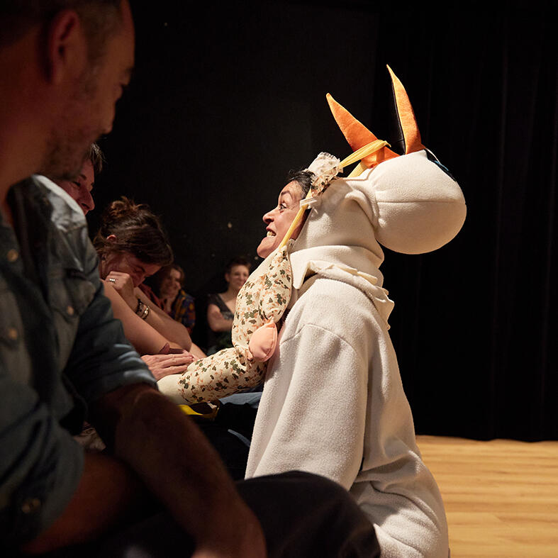 De l’origine du monde, c’est initialement une investigation autour de la parentalité, commencée en 2020. À partir d’une multitude de témoignages collectés auprès de personnes de tous âges, d’archives personnelles, de matières littéraires, scientifiques, sonores et statistiques, un premier triptyque de spectacles éphémères a existé, qui interrogeait tour à tour la parole des femmes, des hommes et des engendré·e·s. Entre aveu d’impuissance à trouver des réponses satisfaisantes, tentative de dire caca boudin à l’injonction sociale, rêverie et fête cauchemardesque, Charlotte et Raphaëlle entrent ici en territoire inconnu. Comme à la chasse aux papillons, elles partent dans les prairies cosmiques de leur inconscient, à la recherche de leur parole intime à propos de la parentalité.
