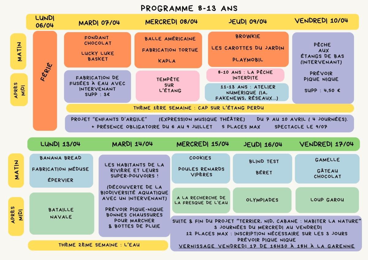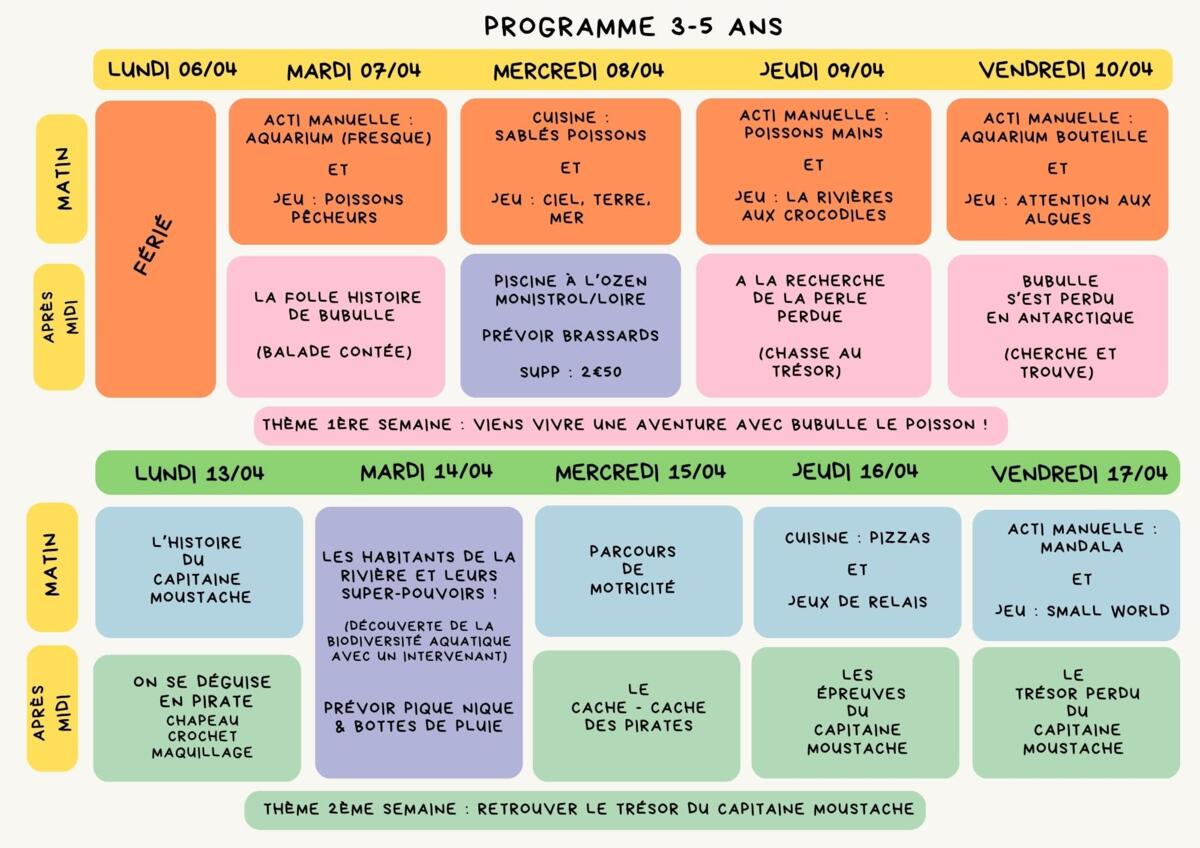 Programmes des vacances de Printemps