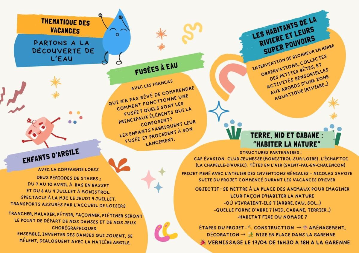 Voici les programmes des vacances de printemps. Vous pouvez inscrire vos enfants sur https://capevasion.portailenfance.fr