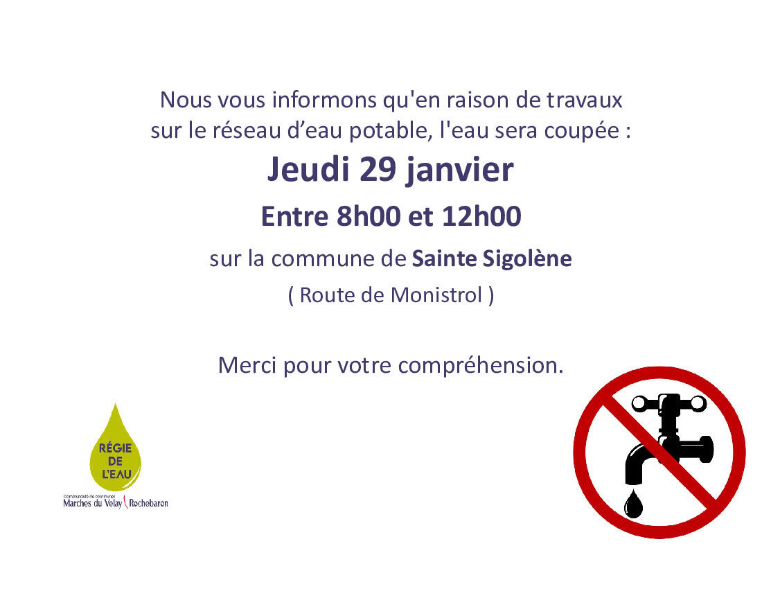 🚱 coupure d'eau à Sainte Sigolène🚱