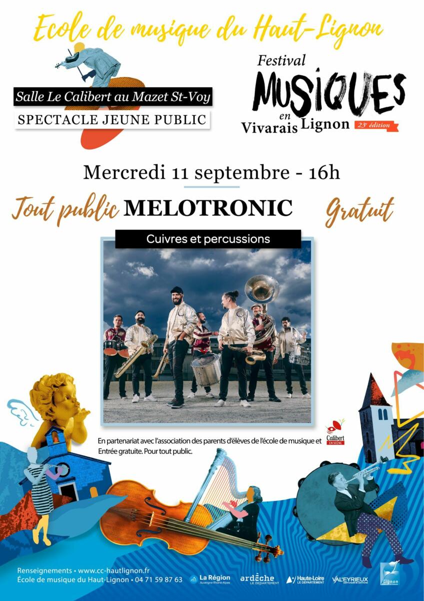 Rendez-vous mercredi 11 septembre à 16h au Calibert pour une rentrée de l'Ecole de Musique Intercommunale du Haut Lignon - EMIHL - animée par MELOTRONIC pour un concert exceptionnel d'ouverture de la saison 24-25.
