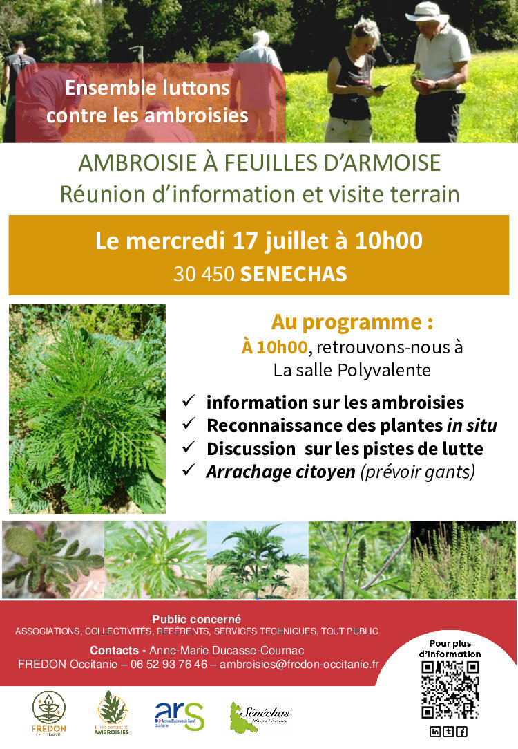 Une réunion publique d'information sur l'Ambroisie à feuilles d'Armoise aura lieu à la salle polyvalente de Sénéchas le mercredi 17 juillet à partir de 10 heures.