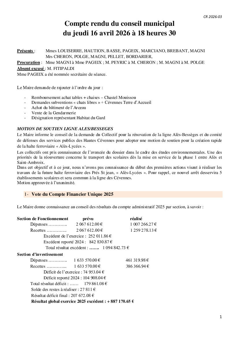 Compte-rendu du Conseil Municipal