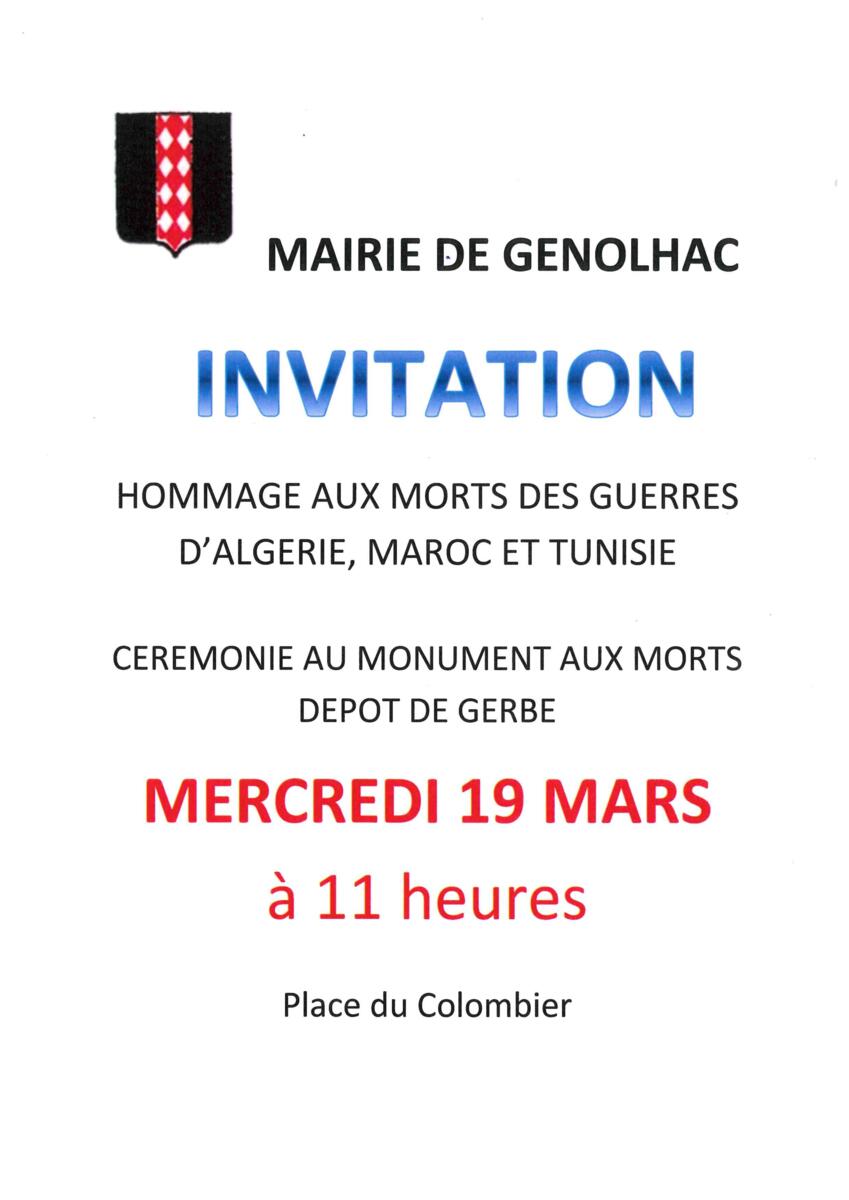 Invitation à la population le mercredi 19 mars 11 h