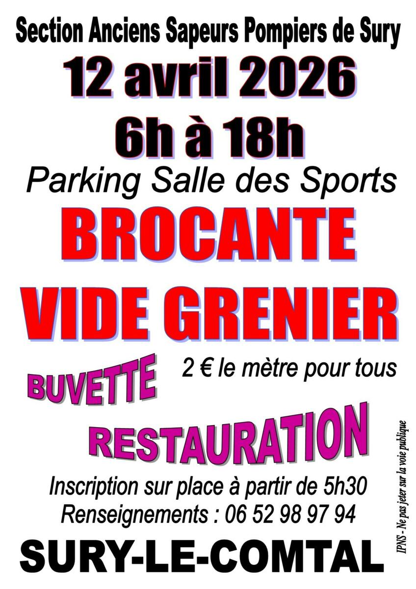 BROCANTE VIDE GRENIER de la section des anciens Pompiers de Sury-le-Comtal - 6h/18h