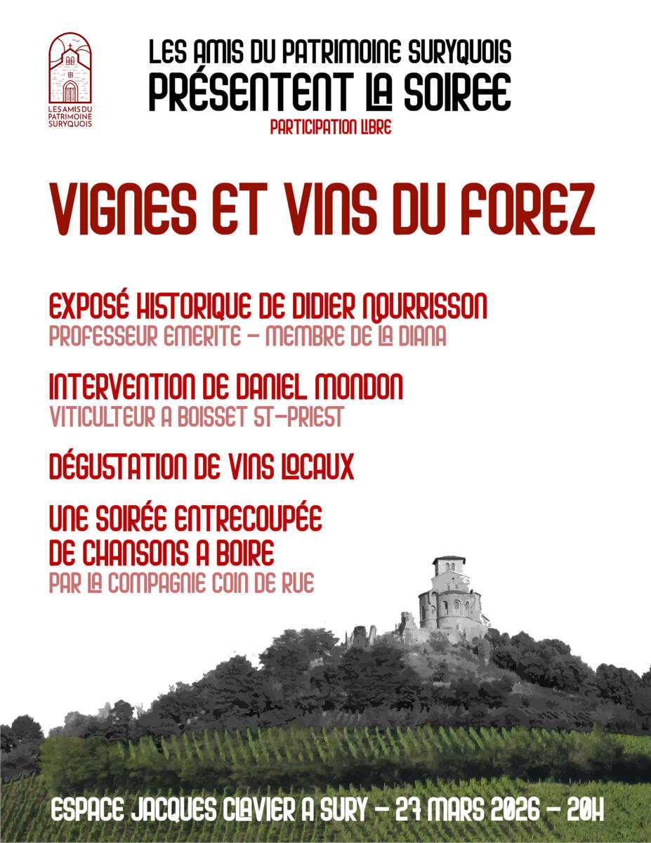Les Amis du Patrimoine Suryquois présentent la soirée : VIGNES ET VINS DU FOREZ