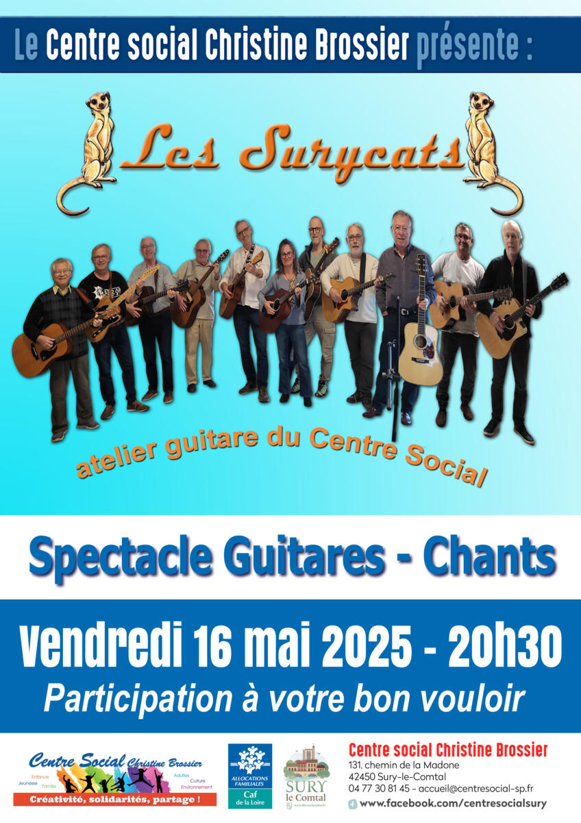L’assemblée générale se terminera par un pot convivial et sera suivie par le concert de l’atelier « Pause Guitare » du centre Social (participation libre).