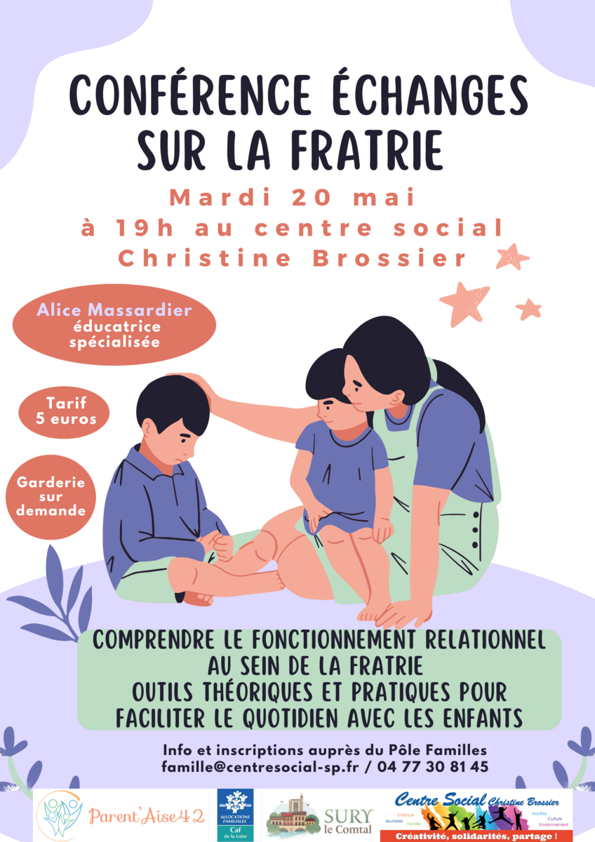 Conférence-échanges d’une durée de 2h sur le thème de la fratrie, animée par Alice Massardier, éducatrice spécialisée.