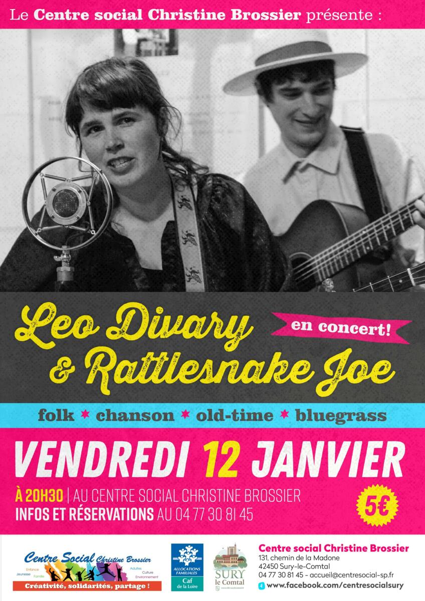 Le 12 janvier prochain, le centre social vous convie à une nouvelle soirée concert en compagnie du duo Leo Divary & Rattlesnake Joe !