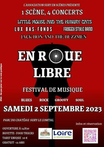 Pour sa 1ère édition l'association Sury en Scènes vous propose de partager un grand moment musical lors du Festival de Musique En Roue Libre.