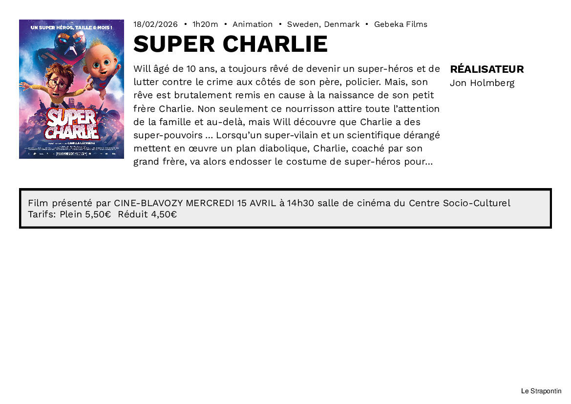 à 14h30: Super Charlie (animation, aventures, famille) 1h20