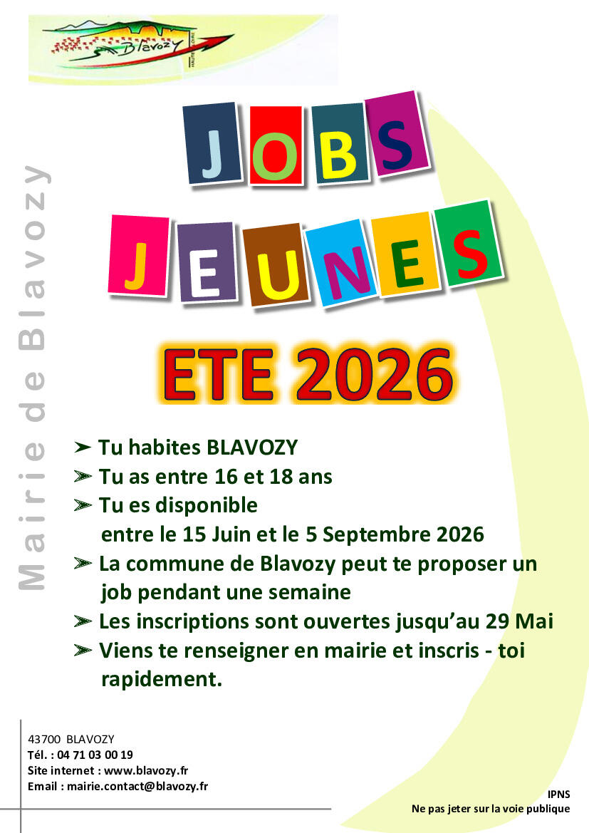La commune propose un job pendant une semaine aux jeunes de Blavozy qui ont entre 16 et 18 ans.