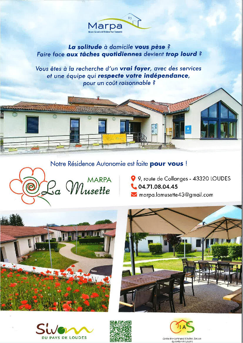 Votre mairie / Actualités / Place disponible MARPA LA MUSETTE Loudes