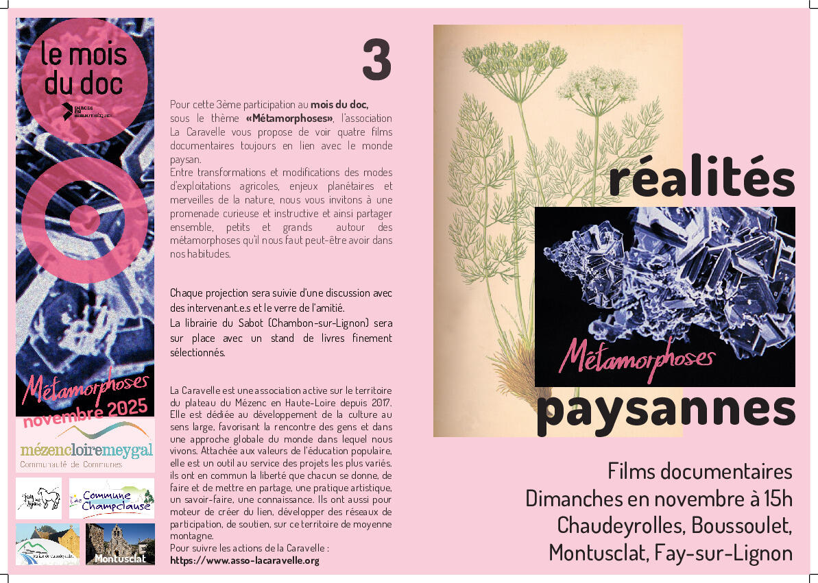 Le mois du Doc 25-10-24 Projection du film documentaire « Le temps des grâces »DIMANCHE 9 NOVEMBRE à 15 H00 à Chaudeyrolles