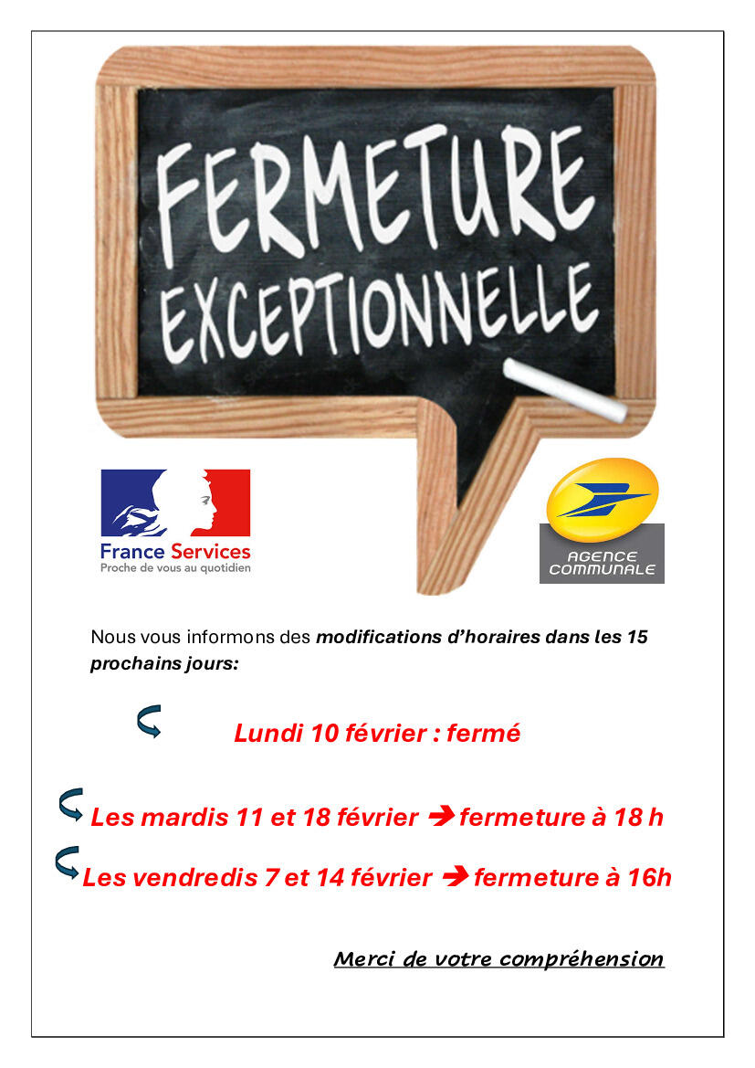 Nous vous informons des modifications d’horaires dans les 15 prochains jours: