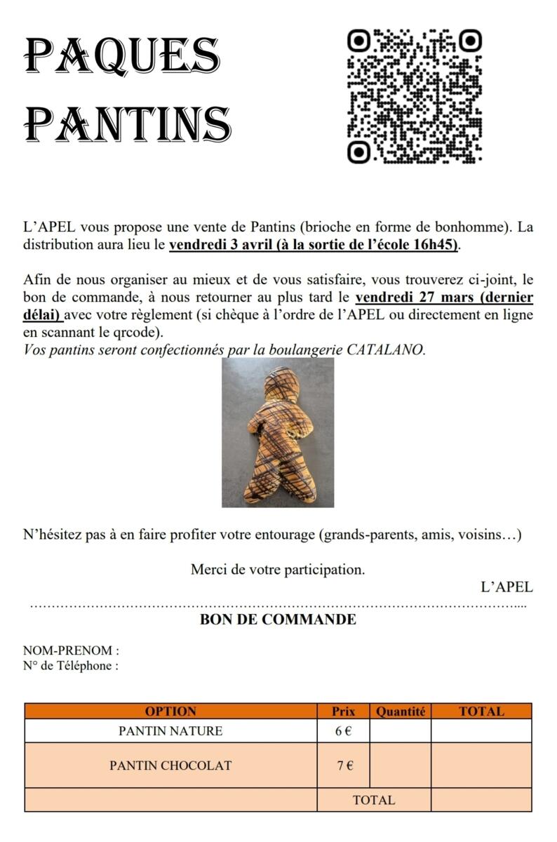 Votre mairie / Actualités / Ecole St Joseph: Opération Vente Pantins 🥨🥯