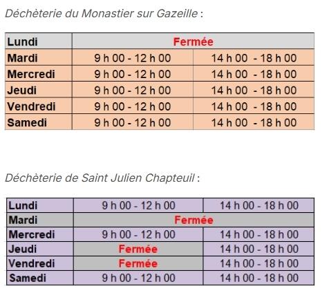 Horaires d'été des déchèteries