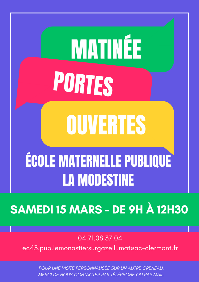L'école maternelle publique La Modestine vous ouvre ses portes SAMEDI 15 MARS.