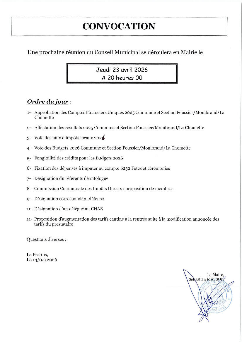 Réunion du Conseil Municipal