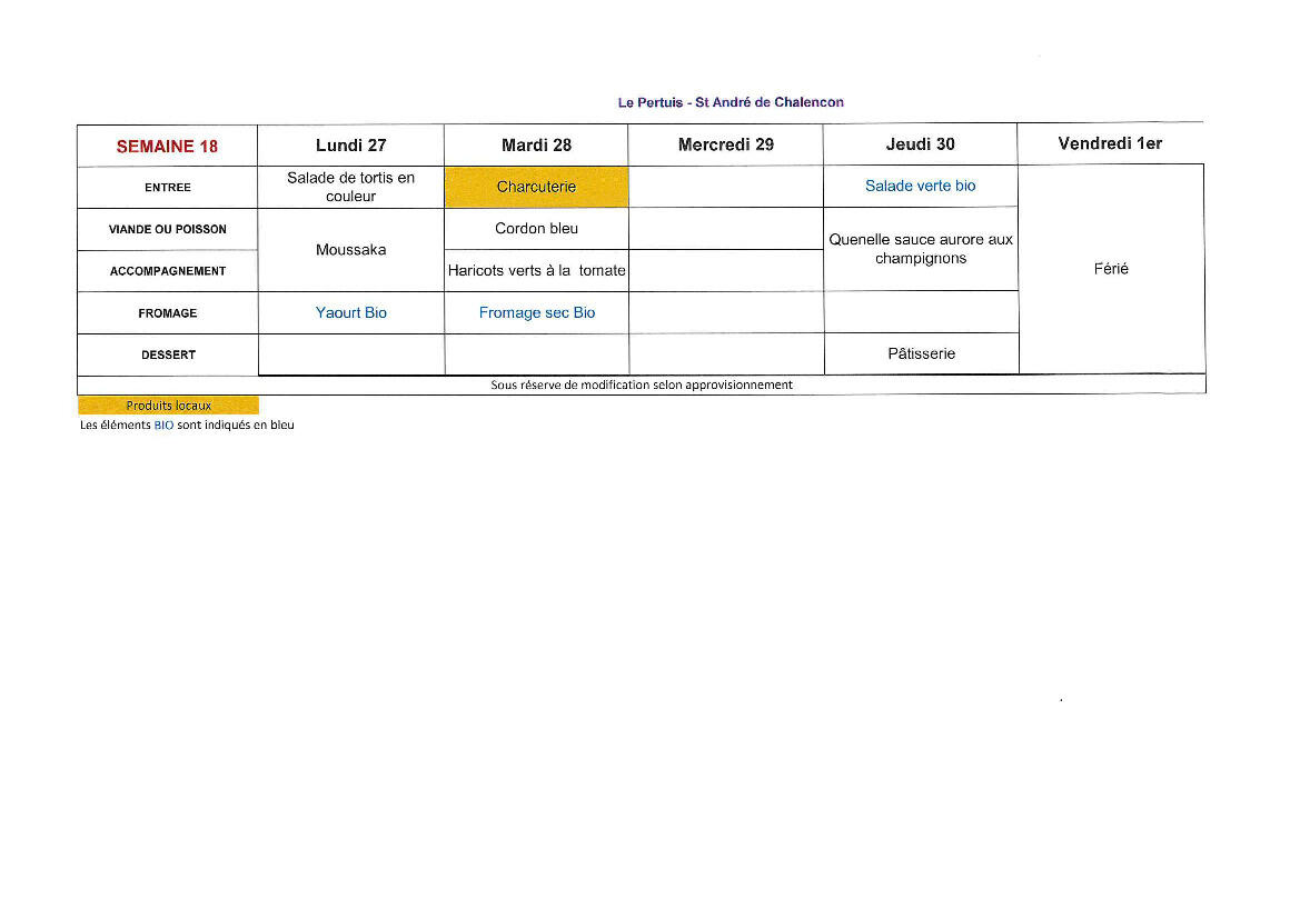 Menu cantine