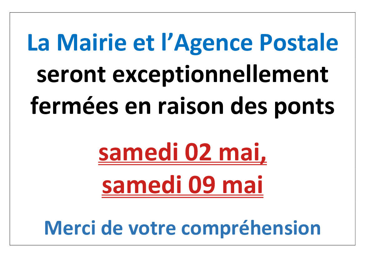 Fermeture exceptionnelle accueil Mairie/Poste