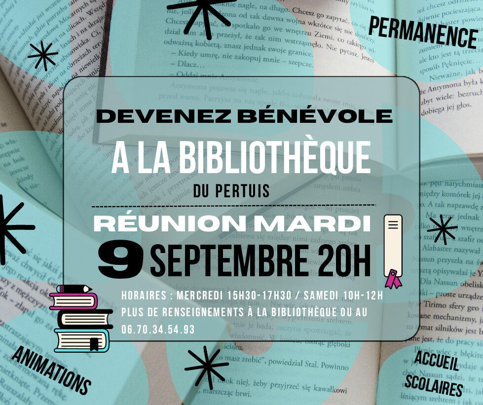 Vous voulez rejoindre l'équipe de bénévoles de la bibliothèque du Pertuis ?