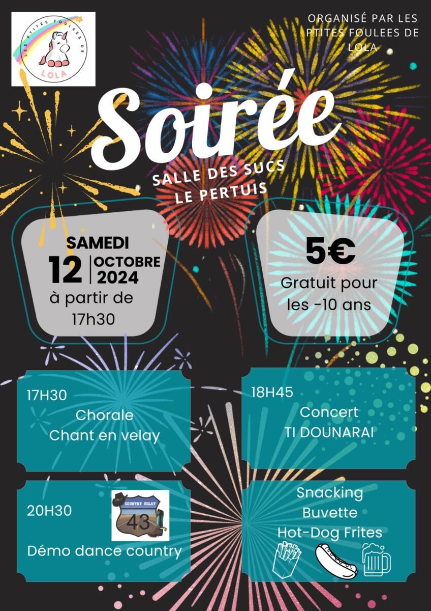Samedi 12 octobre, l'Association Les P'tites Foulées de Lola organise une soirée concert à partir de 17h30 à la salle des sucs du Pertuis